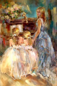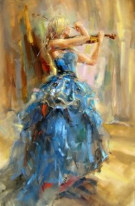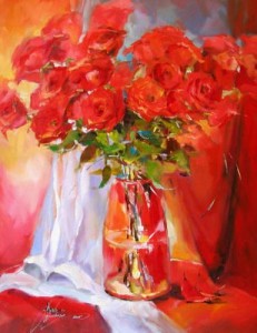 На её картинах чаще всего изображены девушки со скрипкой, балерины, танцовщицы в ярко-красной одежды и букеты цветов…